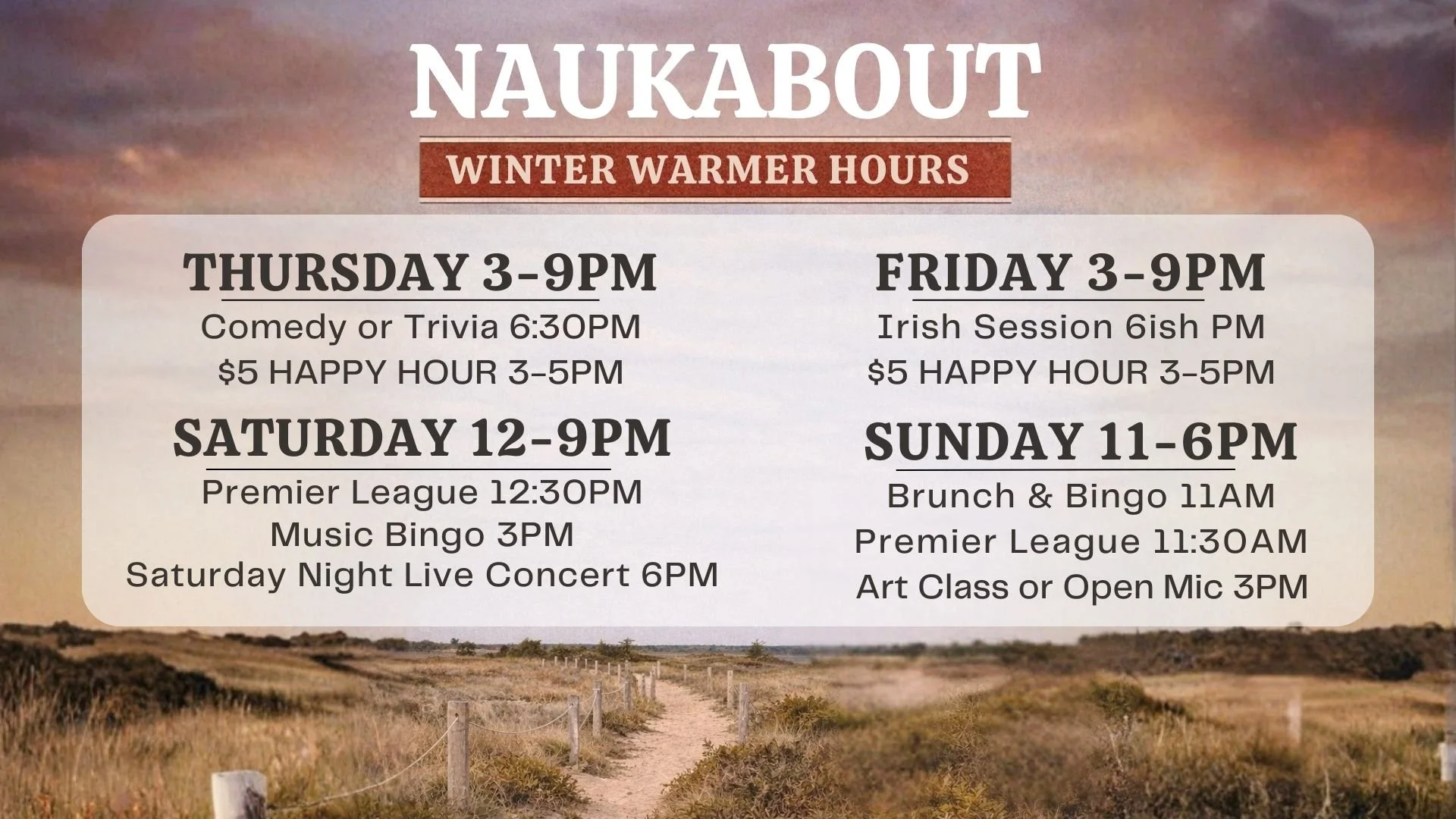 Every week at Naukabout we have something cooking to provide the community with a fun place to gather. Whether you need a barstool to knock out some laptop time, you’re looking to meet up with some family for a bite to eat or looking for an excuse to get out of the house for some fun we have you covered. You can check out our details event calendar for specifics and special event. You can also check out the “Happenings” section of our navigation to drill into specific days/activities . See you soon!