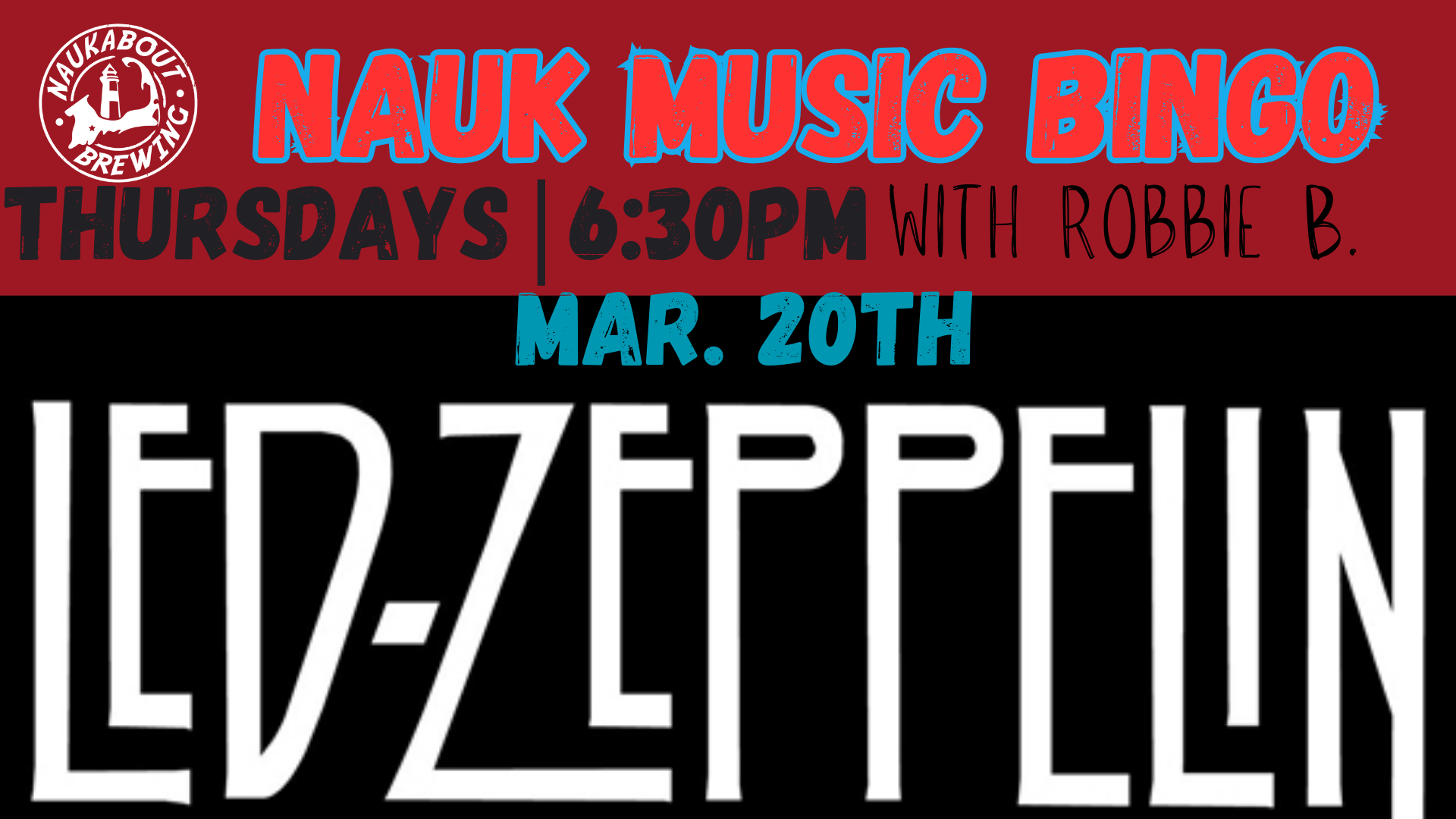 Naukabout Beer Co. (map) 13 Lake Avenue Mashpee, MA, 02649 United States ✚ gCal ✚ iCal Meet us in the taproom for Nauk Music Bingo with ROBBIEThis week's theme: LED ZEPPELIN